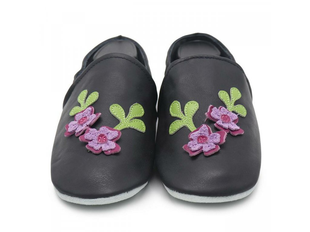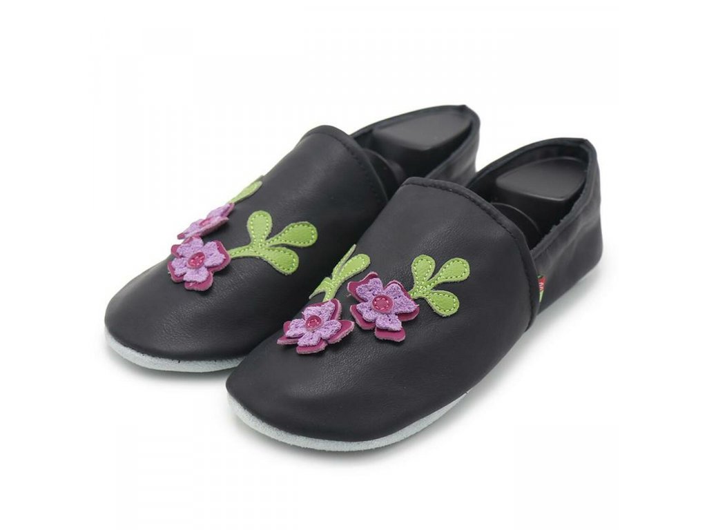 Kožené capáčky pro ženy černé s květinou CAROZOO