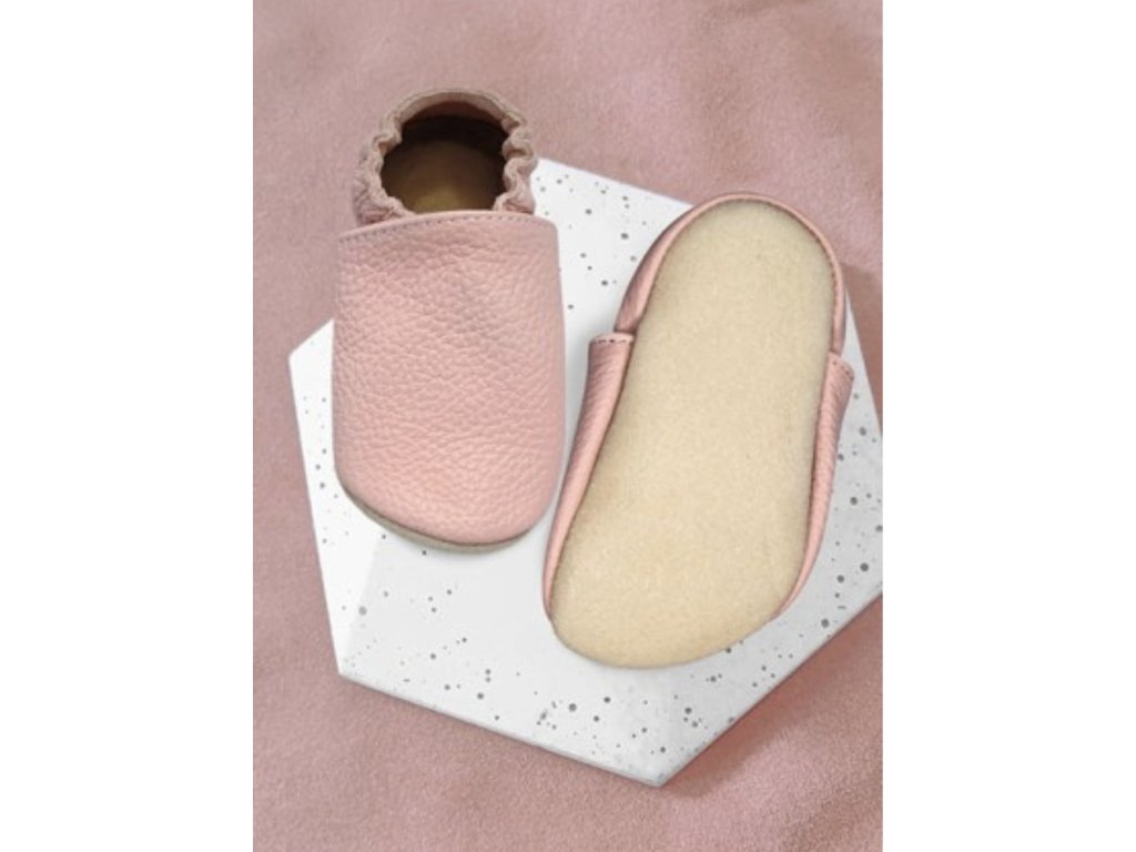 Kožené barefoot Pro capáčky s kaučukovou podrážkou světle růžové - FUNKY MONKEY