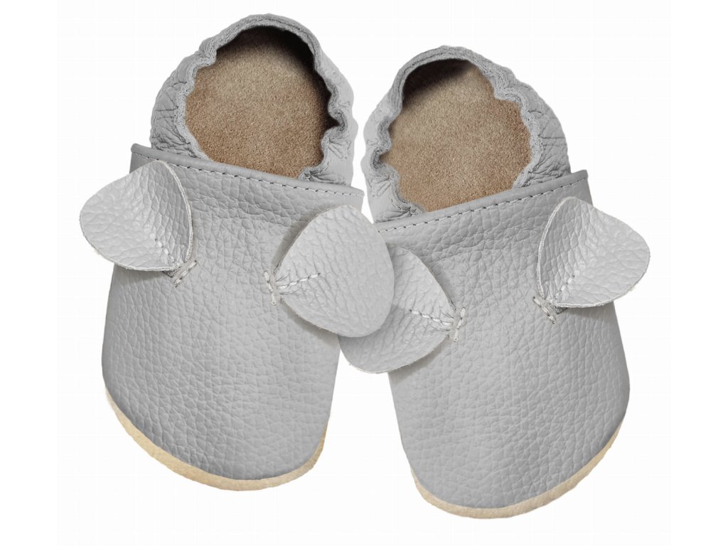 Kožené barefoot Pro capáčky s oušky a kaučukovou podrážkou šedé - FUNKY MONKEY