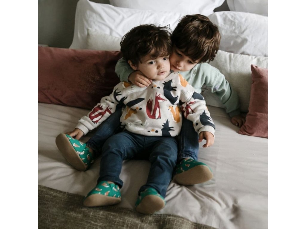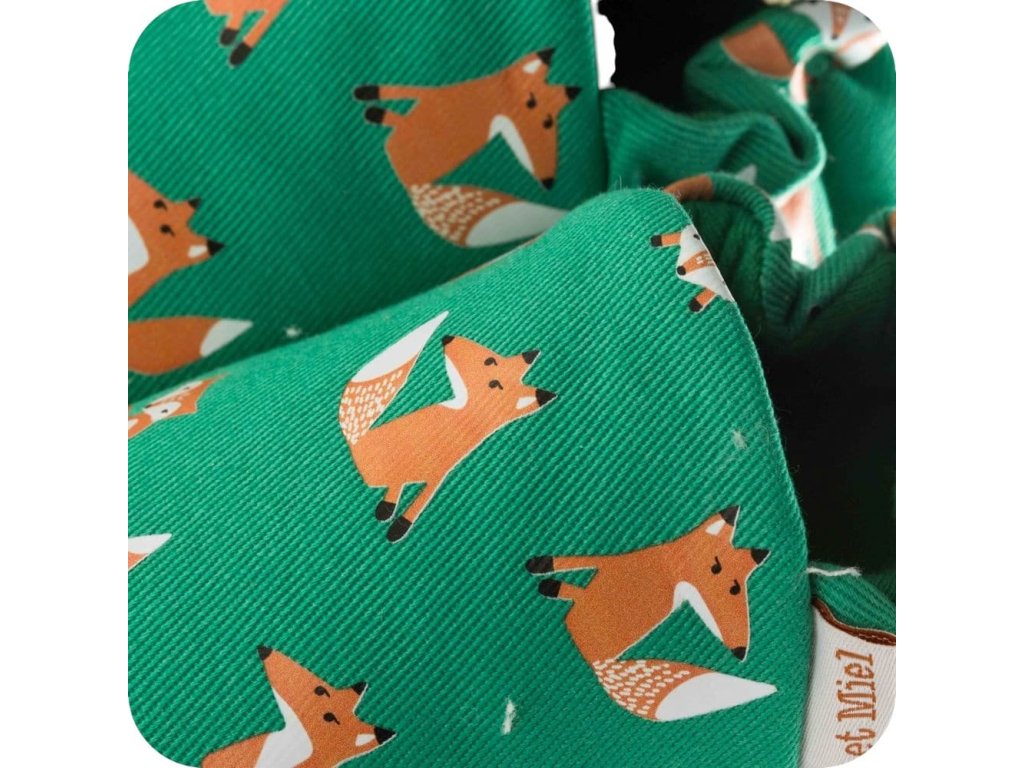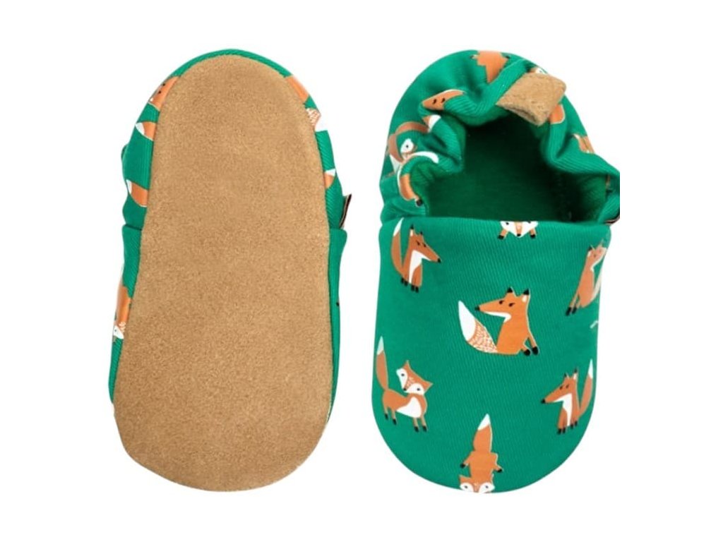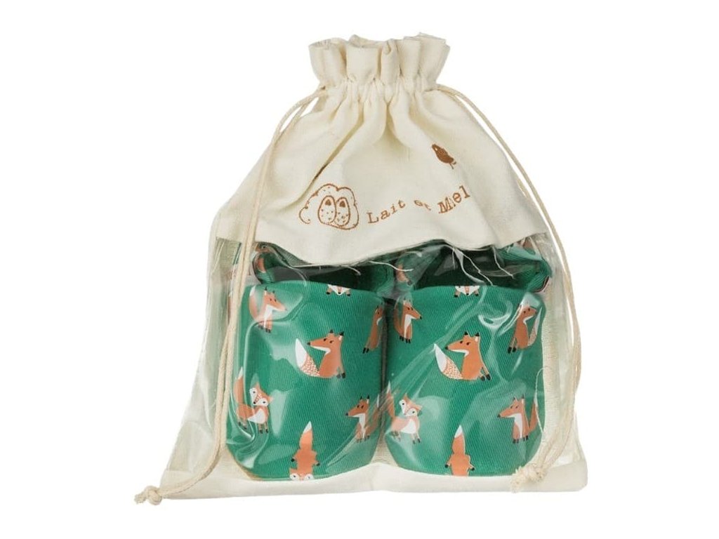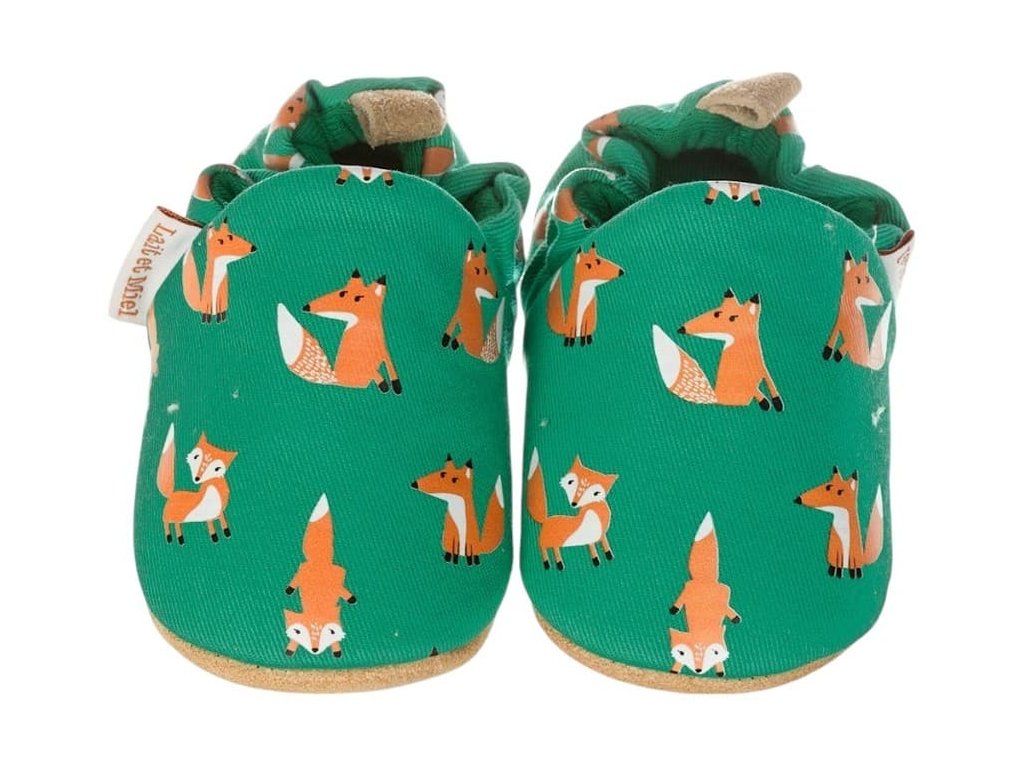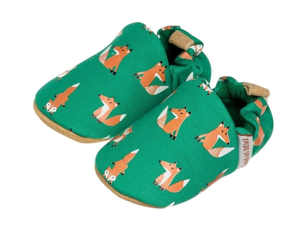 Bavlněné capáčky s koženou podrážkou s liškami LAIT ET MIEL