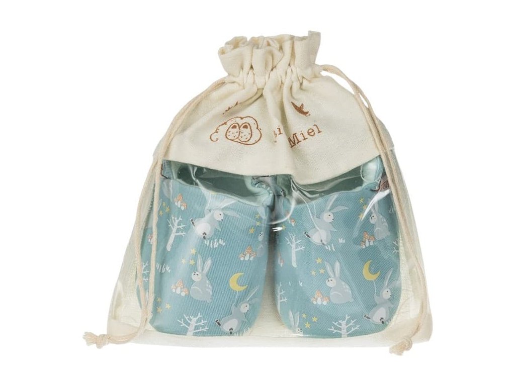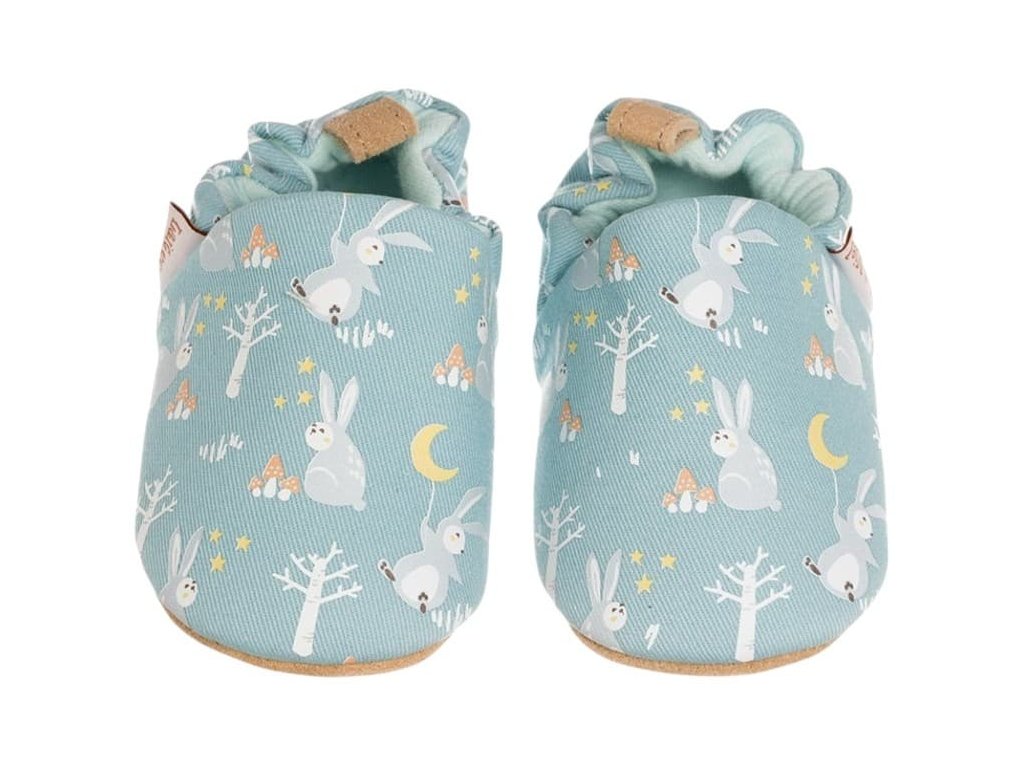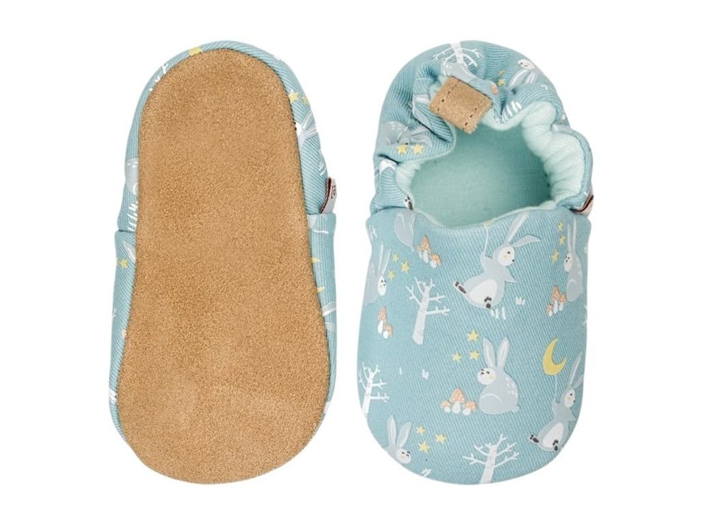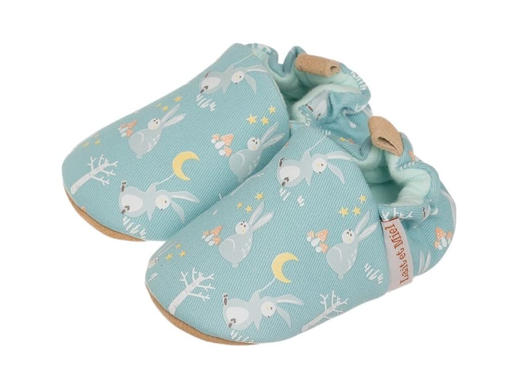 Bavlněné capáčky s koženou podrážkou se zajíčky LAIT ET MIEL