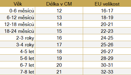 Výslednou hodnotu porovnejte s velikostní tabulkou. Pokud se délka nožičky nachází mezi dvěma velikostmi, doporučujeme zvolit větší.