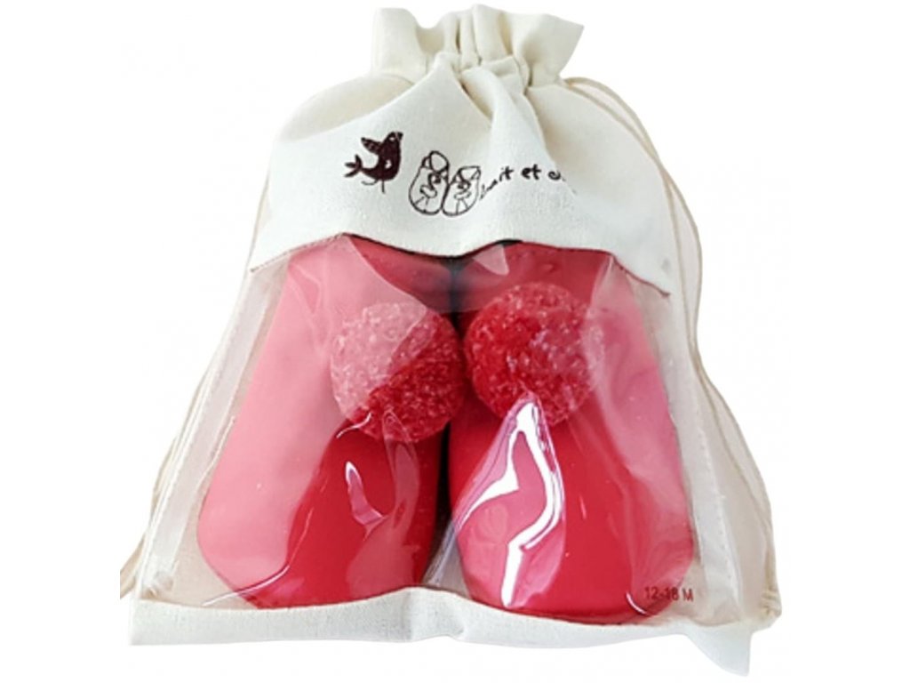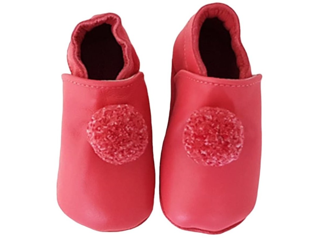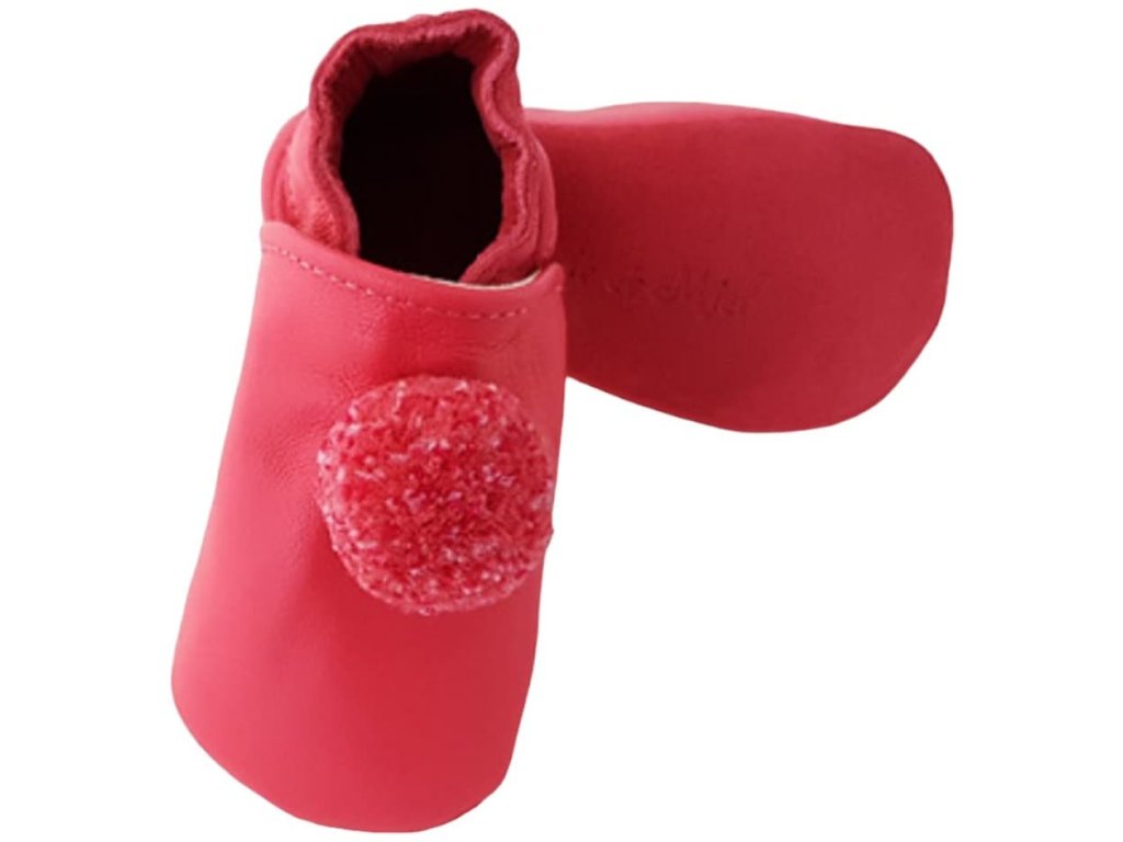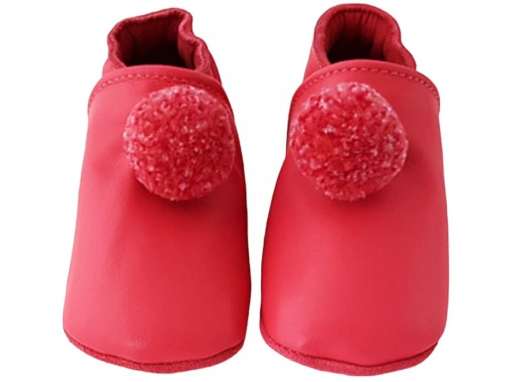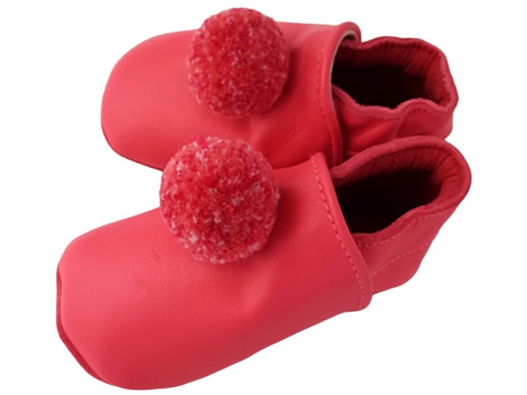 Kožené capáčky červené s bambulkou LAIT ET MIEL