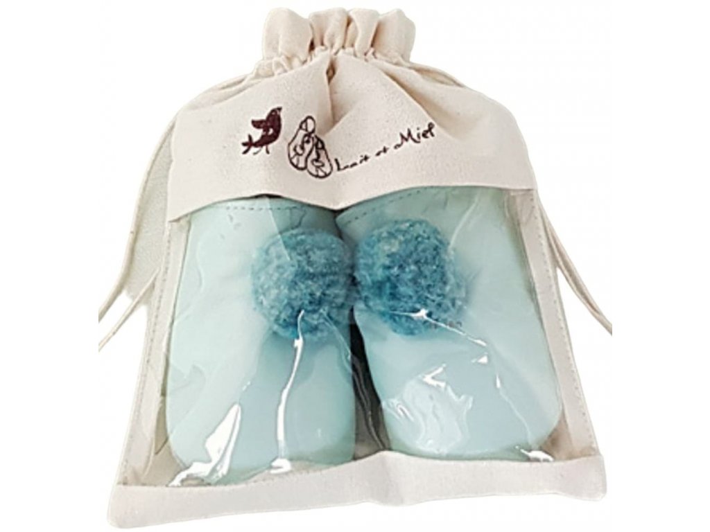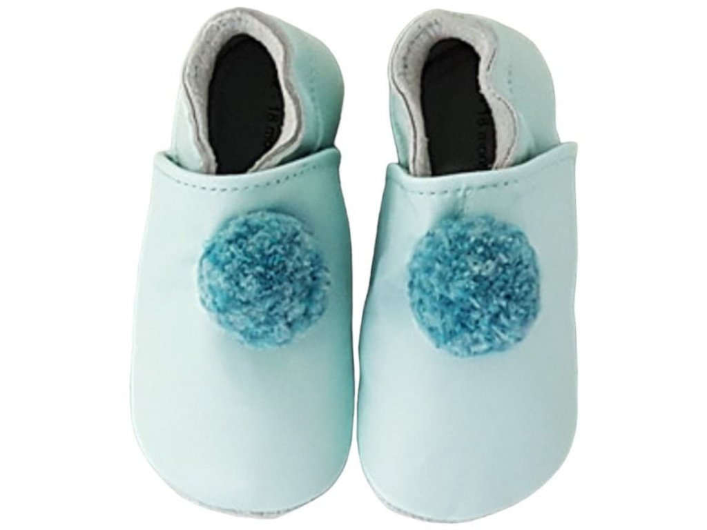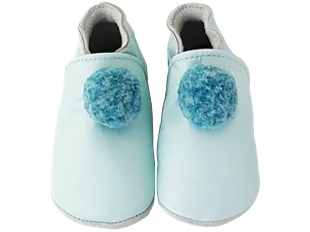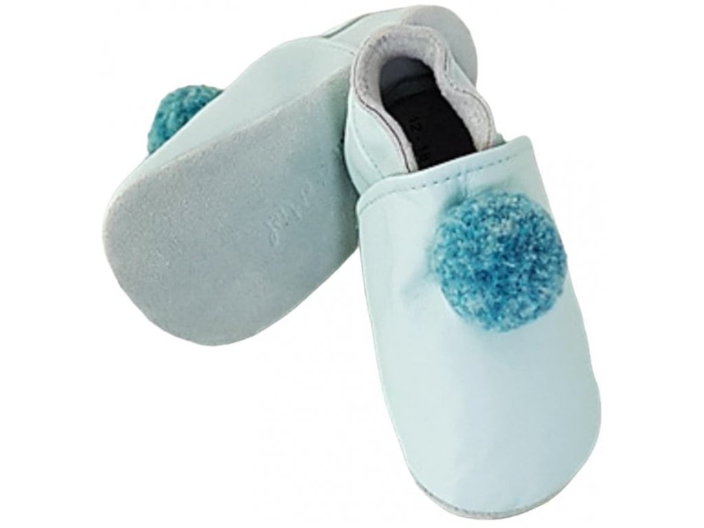 Kožené capáčky modré s bambulkou LAIT ET MIEL