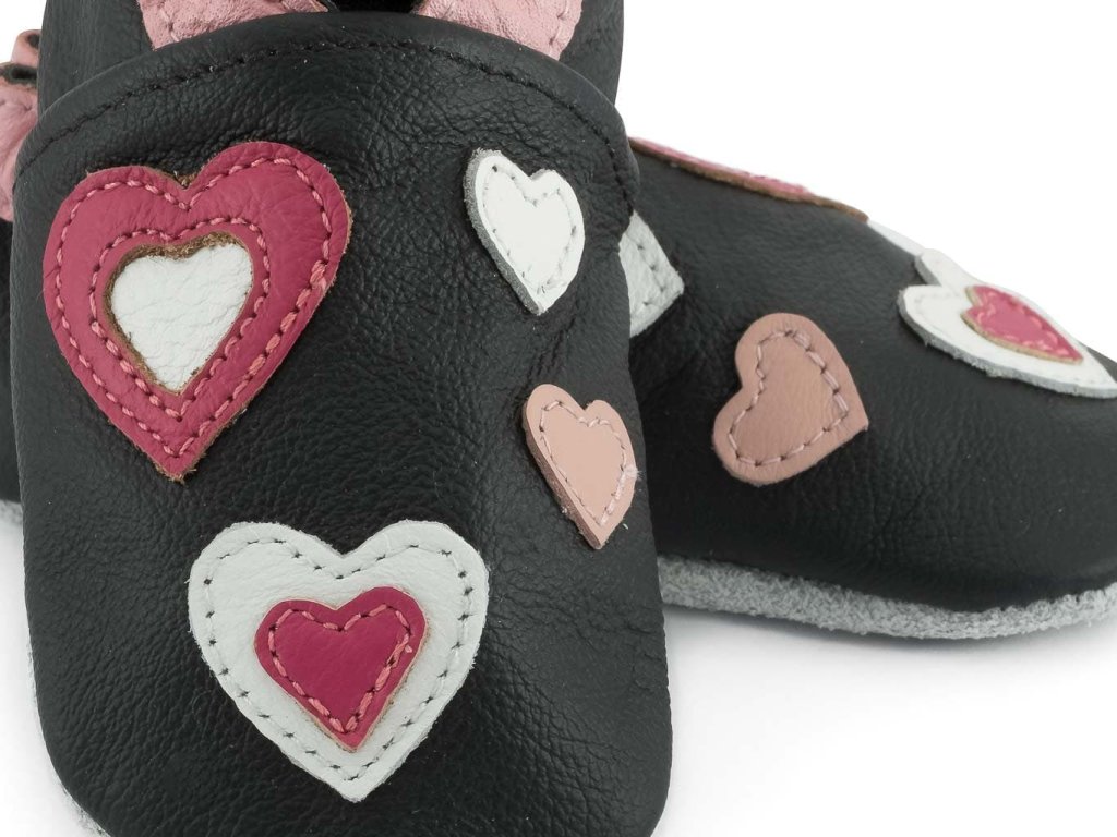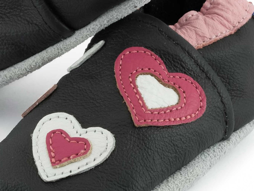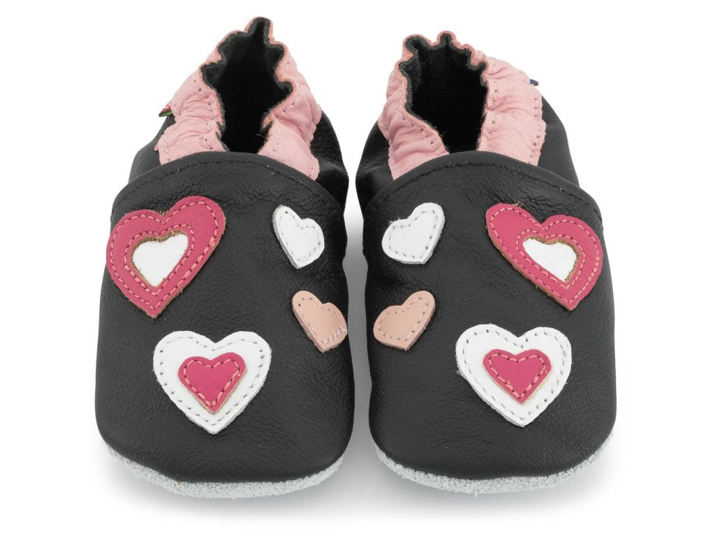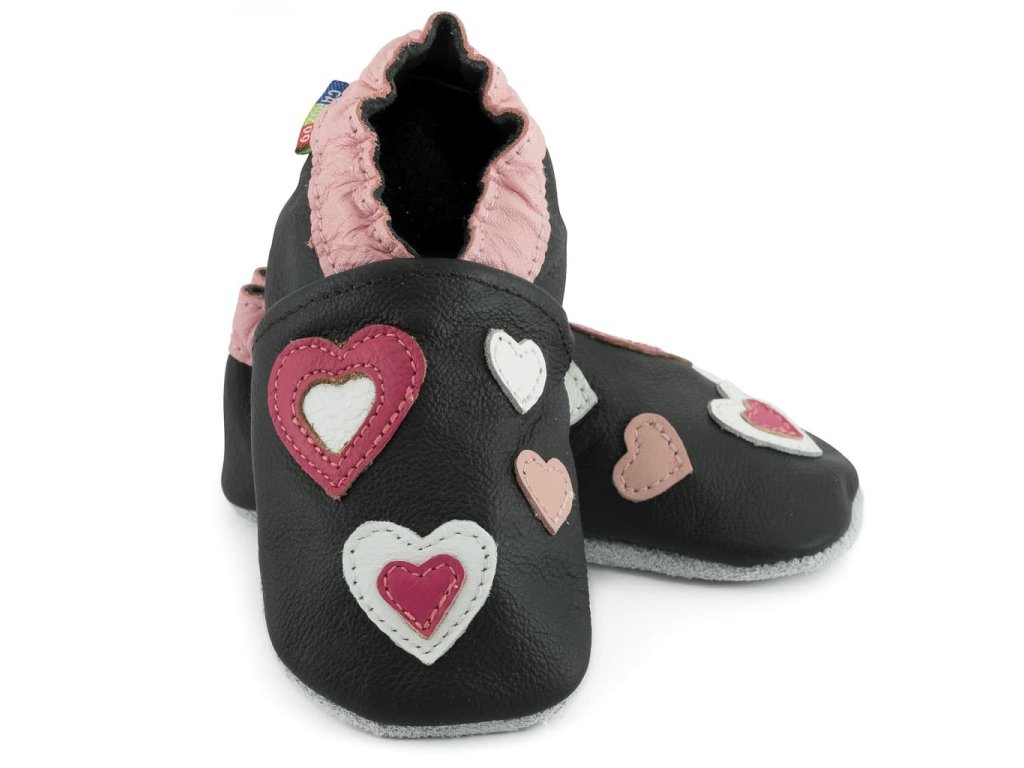 Kožené capáčky s koženou podrážkou barevná srdíčka CAROZOO