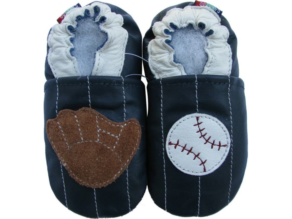 Kožené capáčky s koženou podrážkou baseball na modré CAROZOO