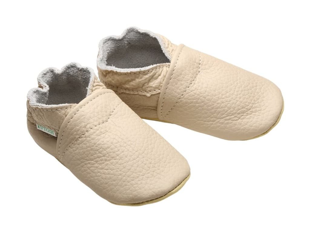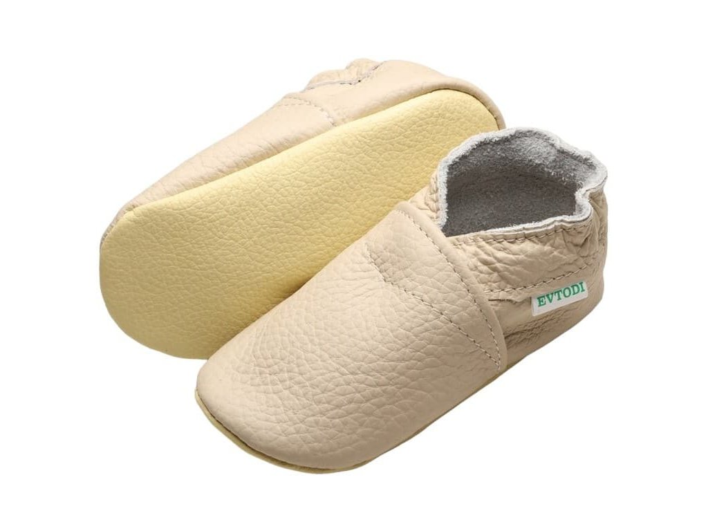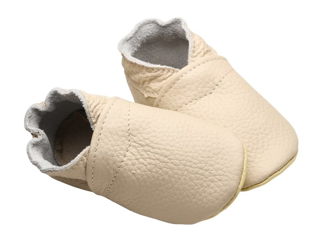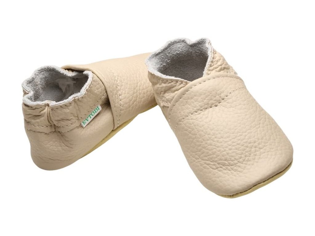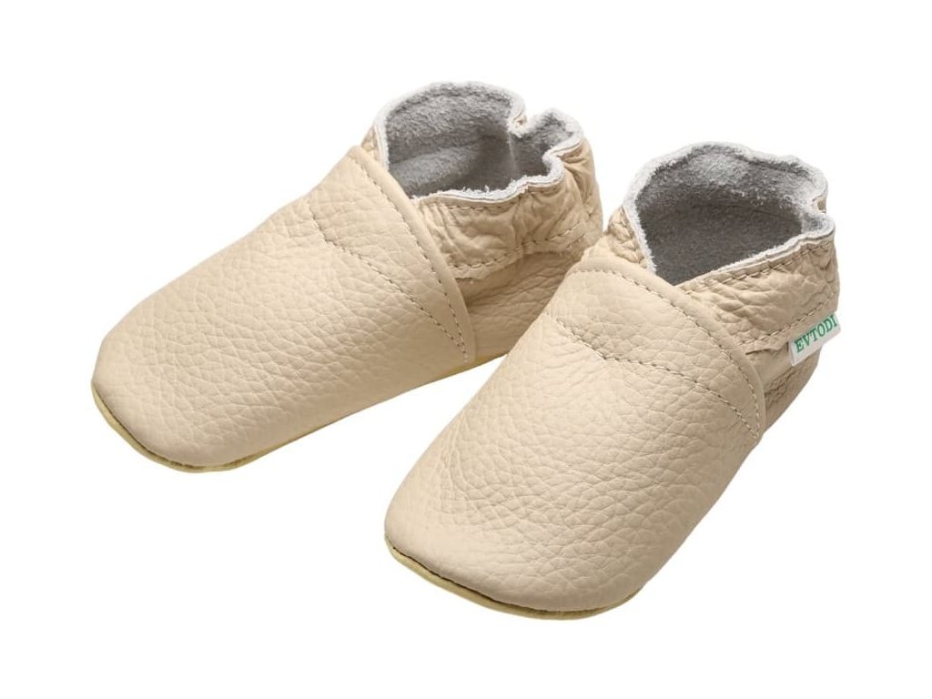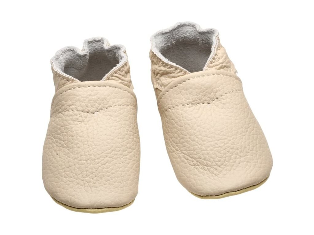 Kožené capáčky s koženou podrážkou béžové EVTODI