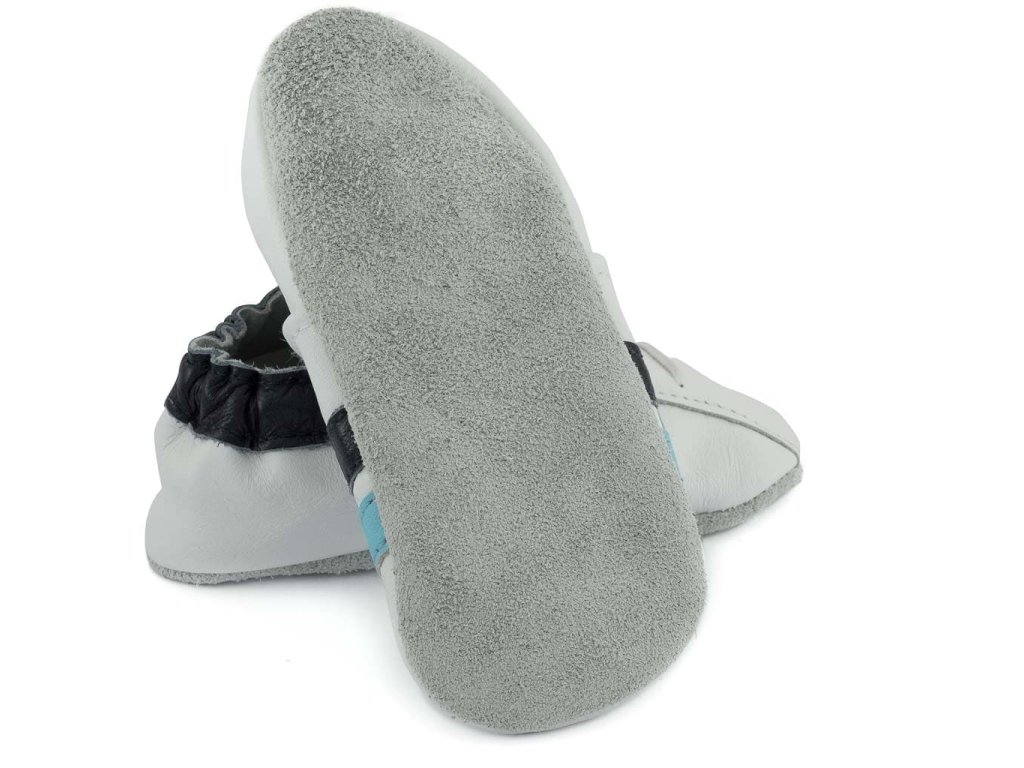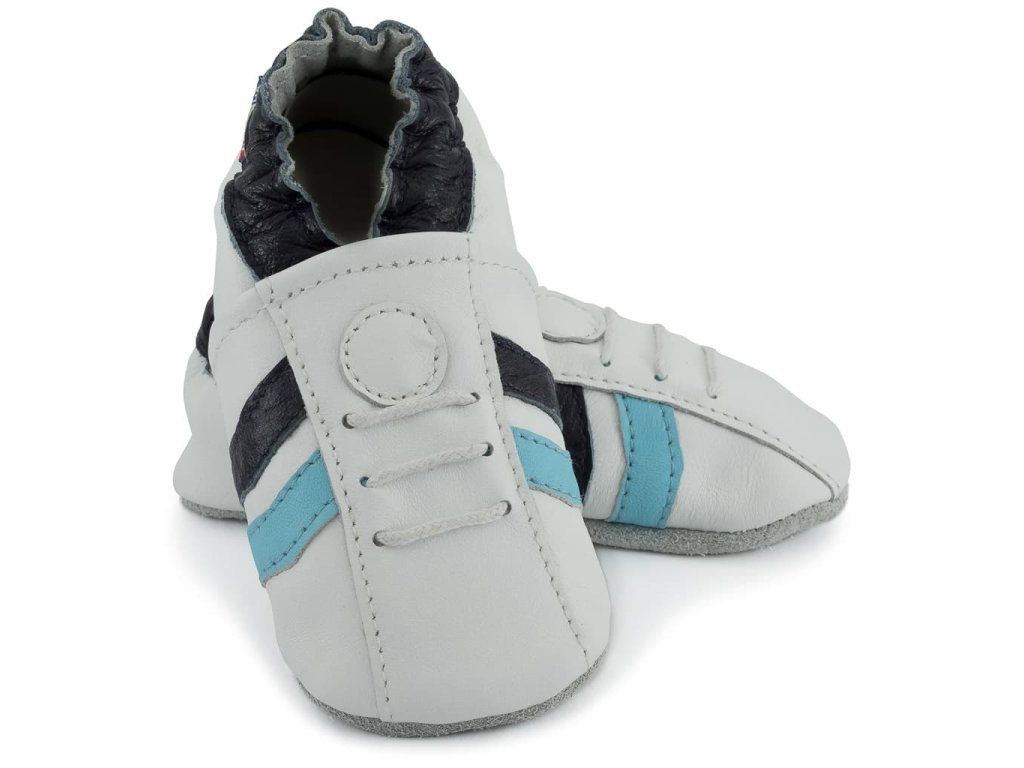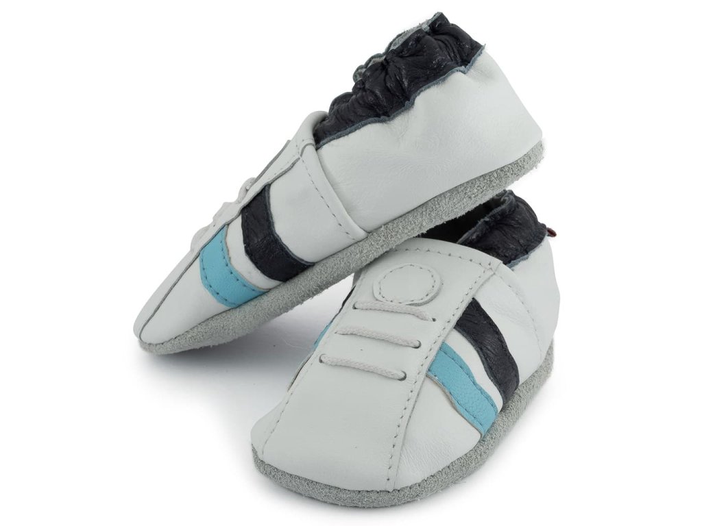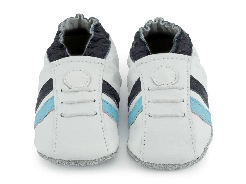 Kožené capáčky s koženou podrážkou bílé tenisky s modrým pruhem CAROZOO