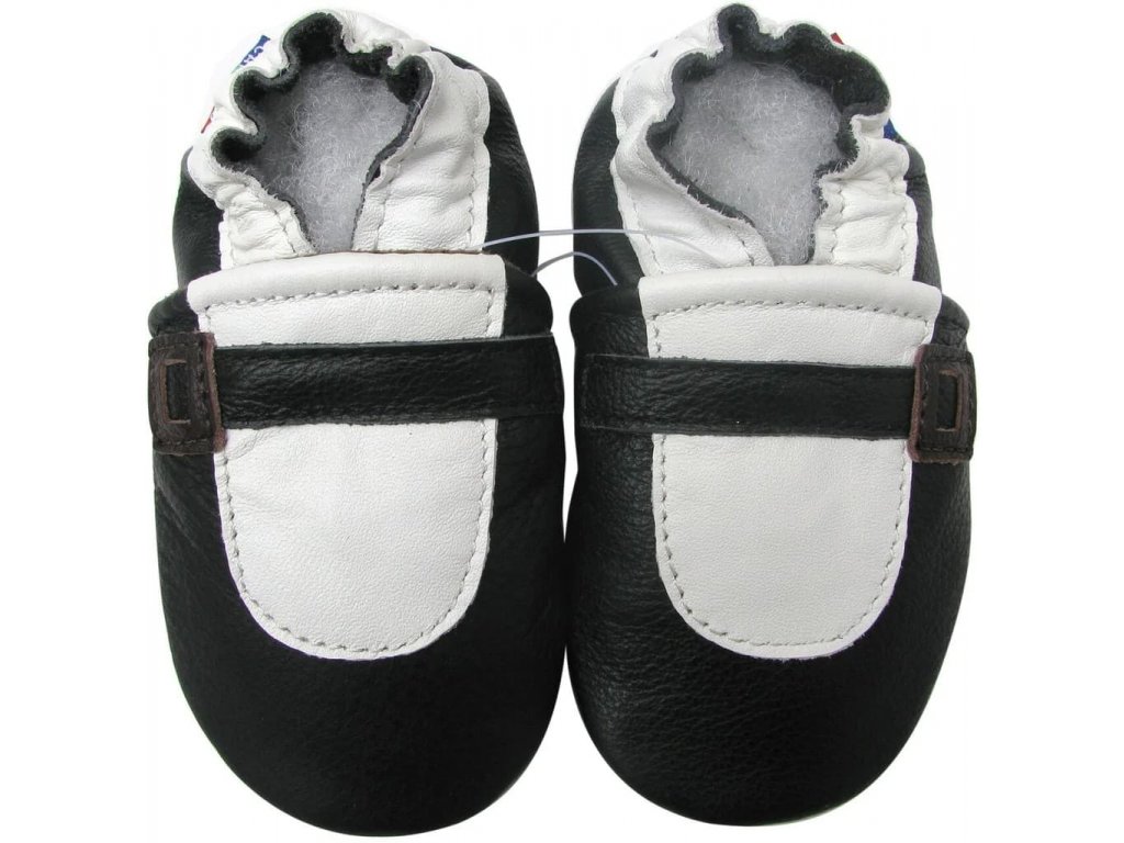 Kožené capáčky s koženou podrážkou černo-bílé CAROZOO