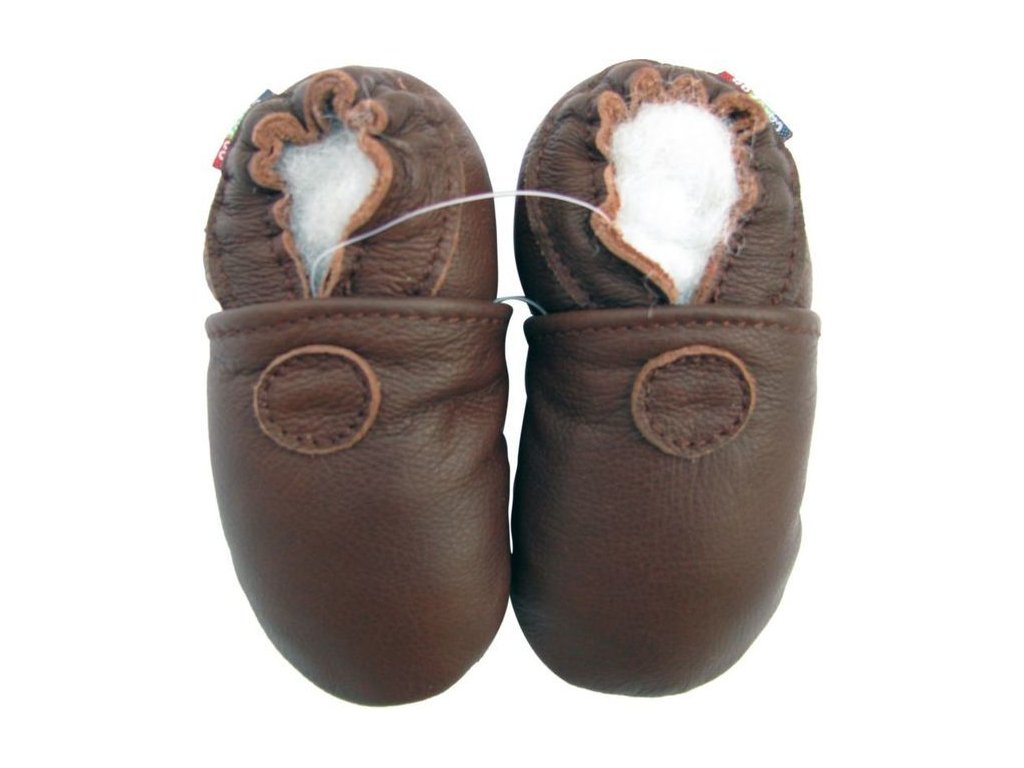 Kožené capáčky s koženou podrážkou jednobarevné hnědé CAROZOO