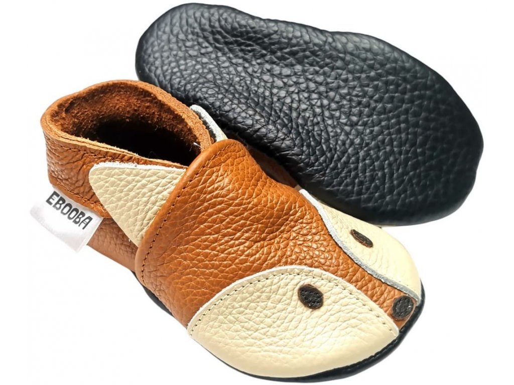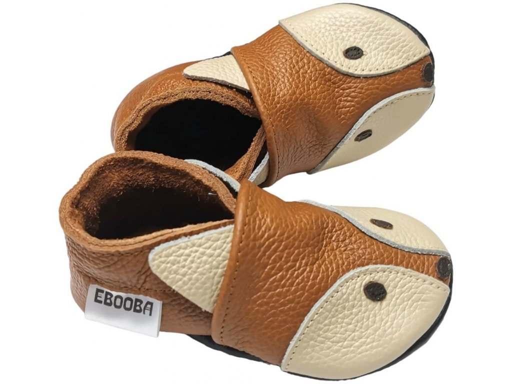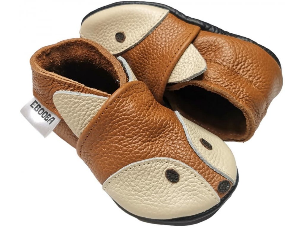 Kožené capáčky s koženou podrážkou liška EBOOBA