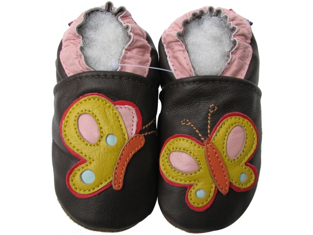 Kožené capáčky s koženou podrážkou motýlek barevný na černé CAROZOO