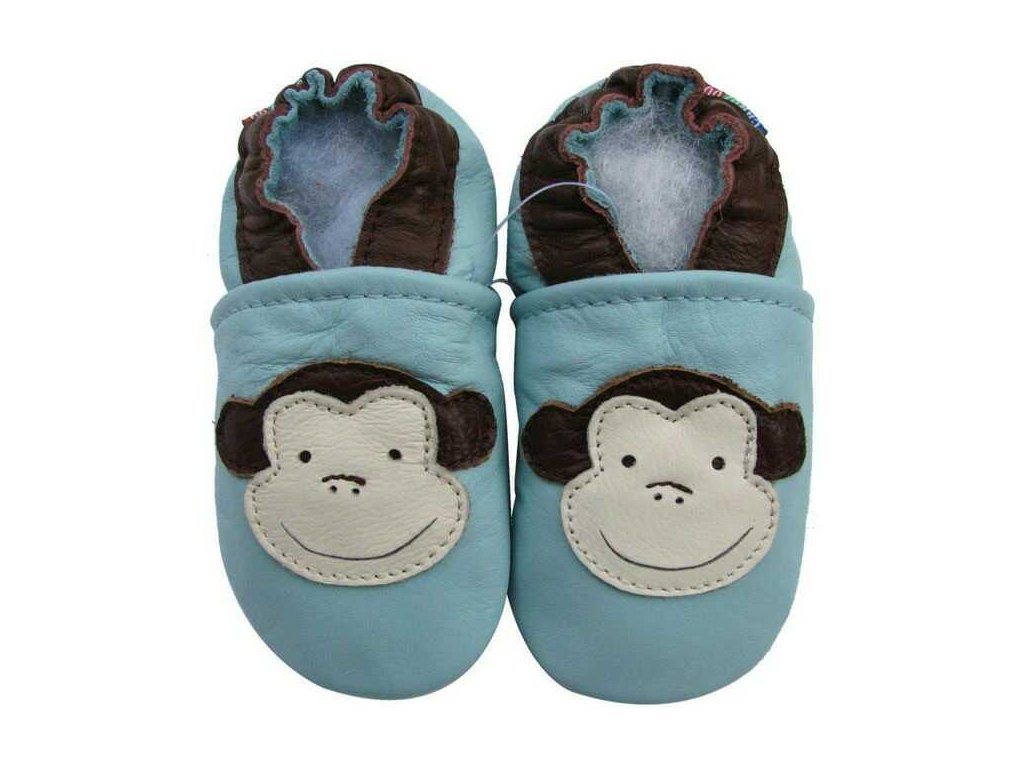 Kožené capáčky s koženou podrážkou opice modrá CAROZOO