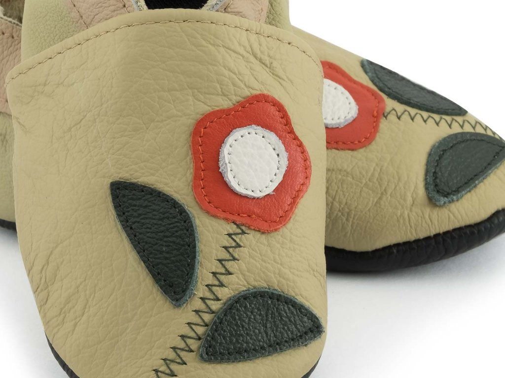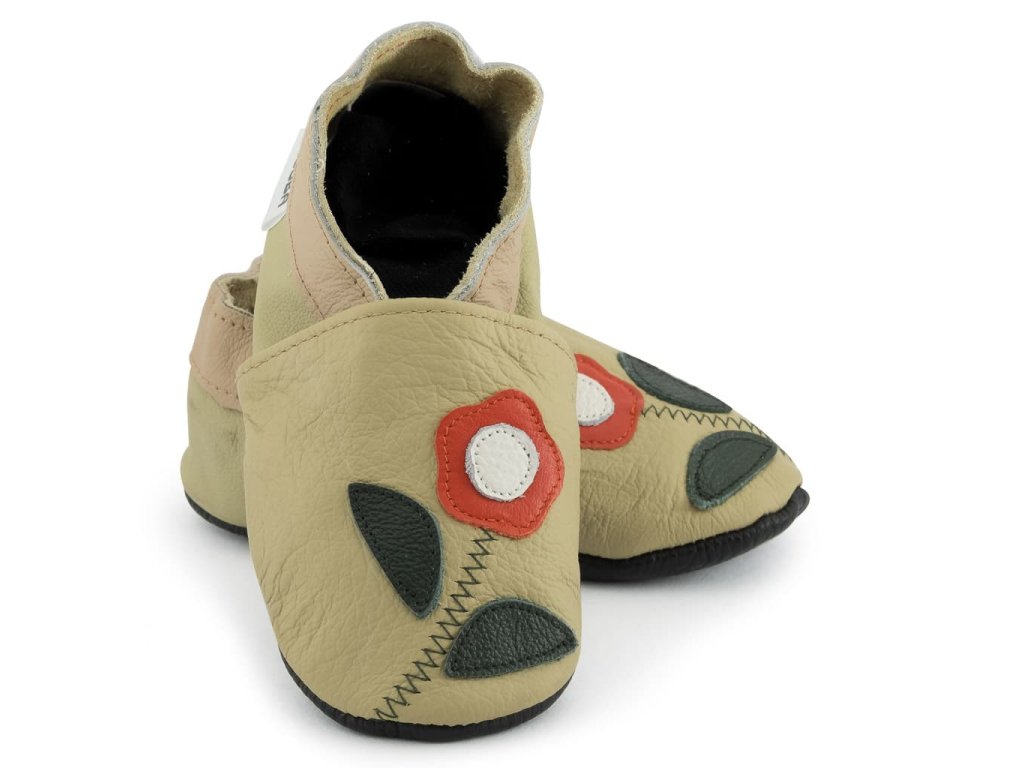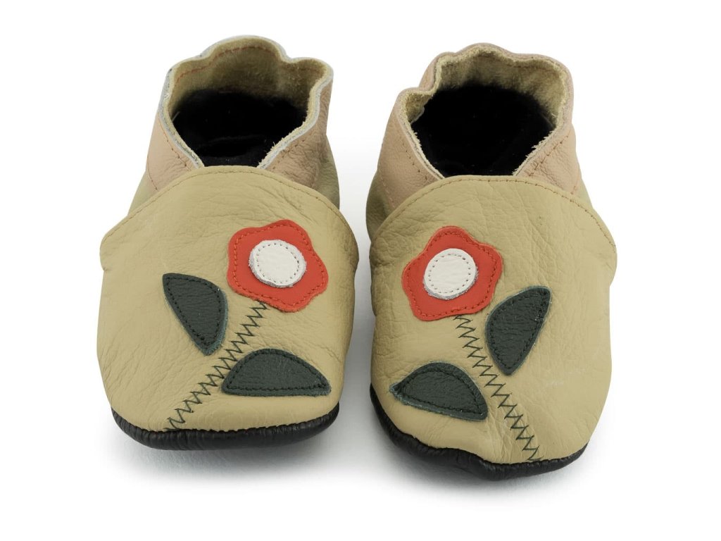 Kožené capáčky s koženou podrážkou s oranžovým květem EBOOBA