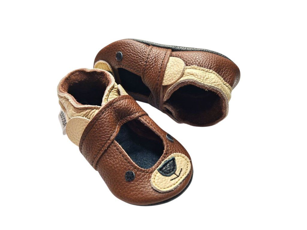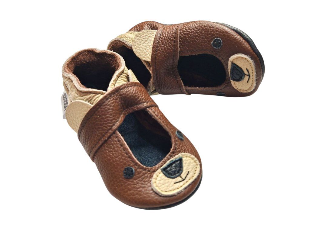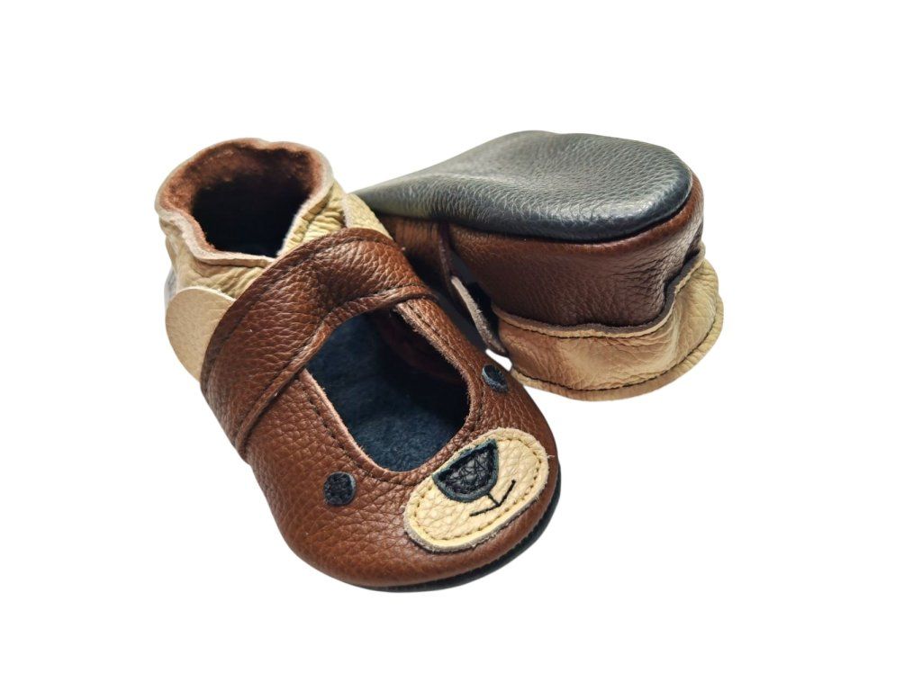 Kožené capáčky s koženou podrážkou sandálky medvídek EBOOBA