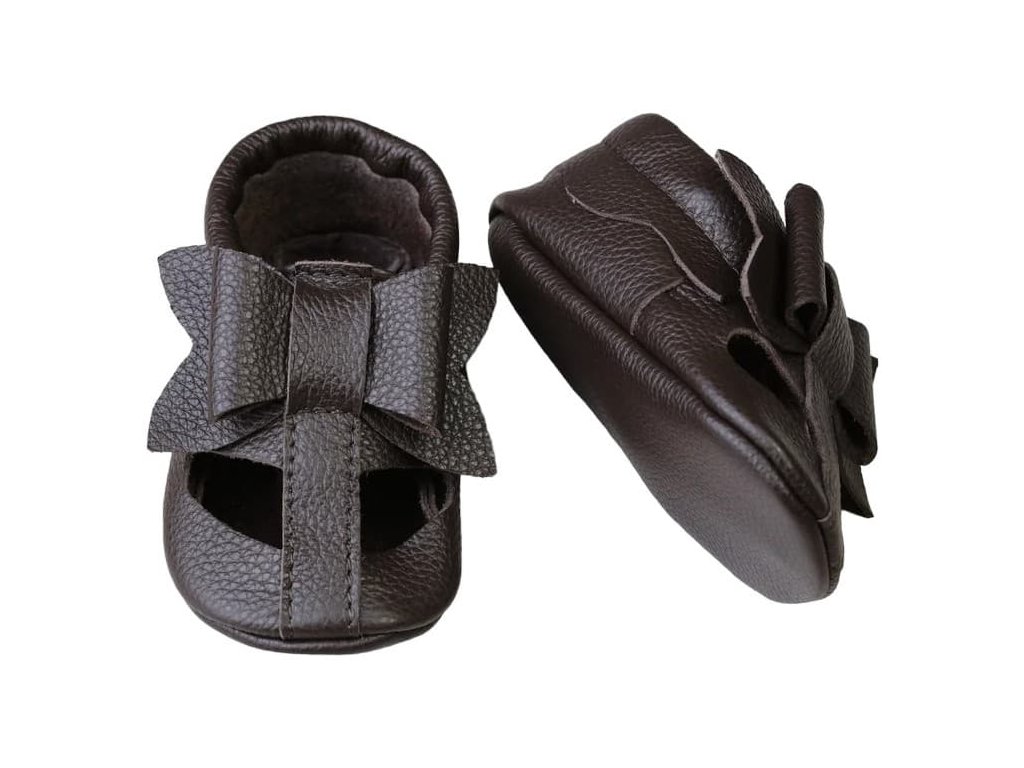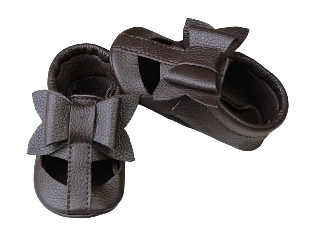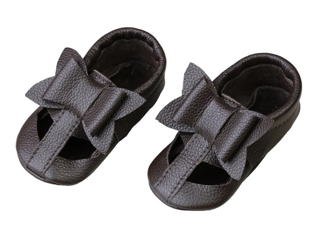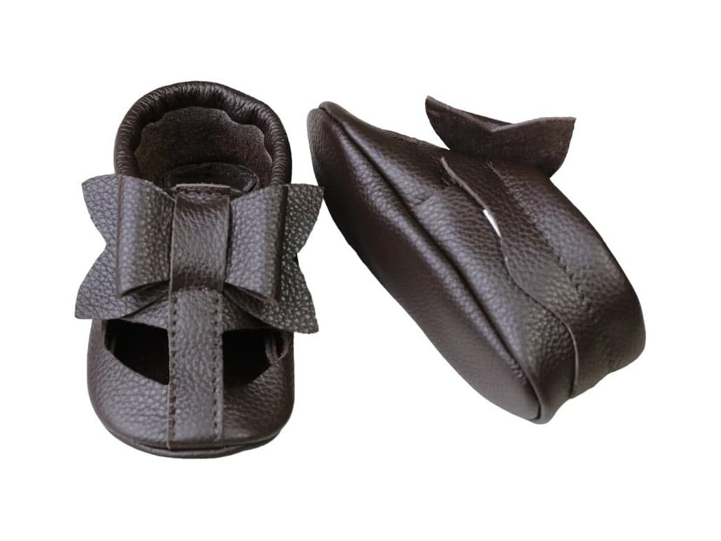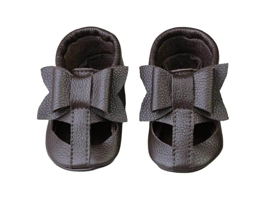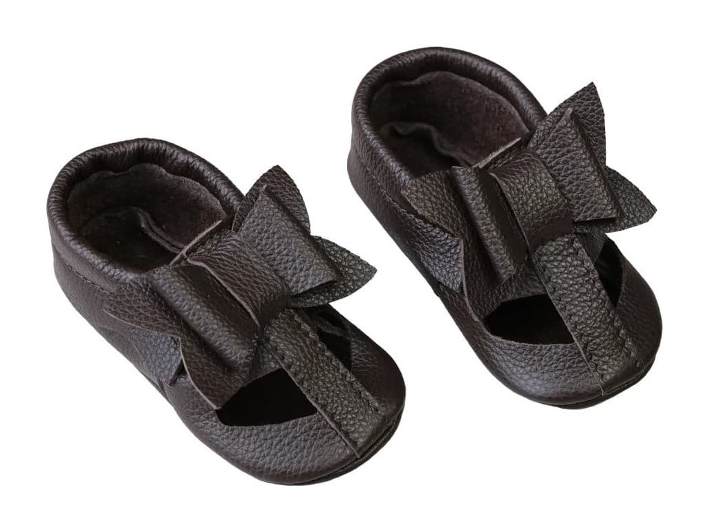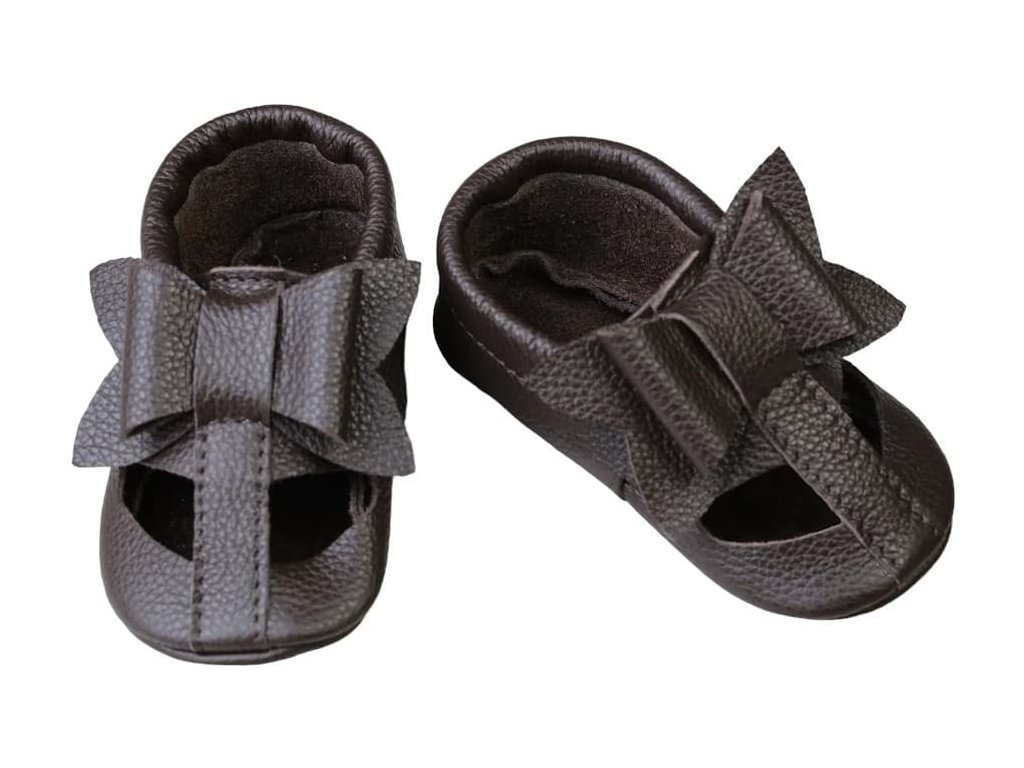 Kožené capáčky s koženou podrážkou sandálky s mašličkou hnědé EVTODI
