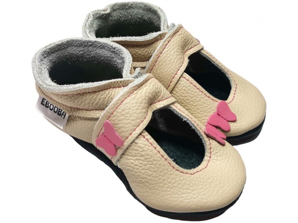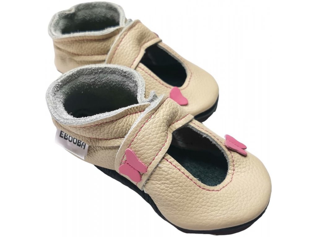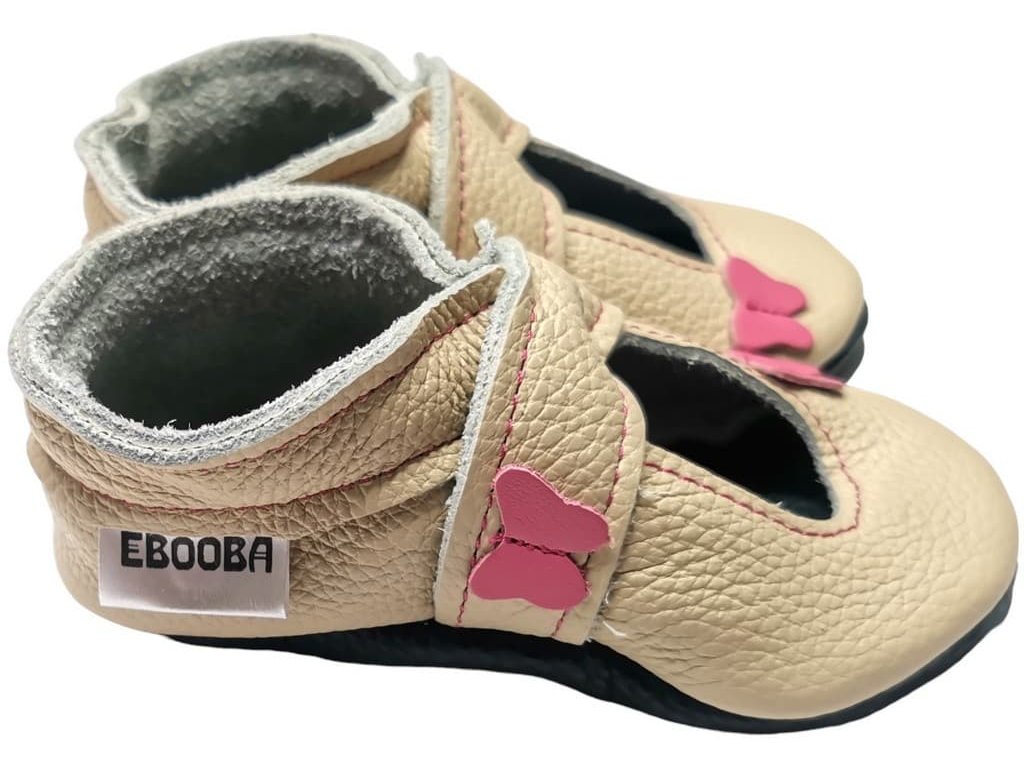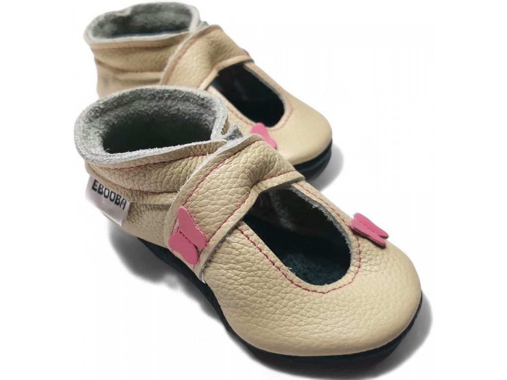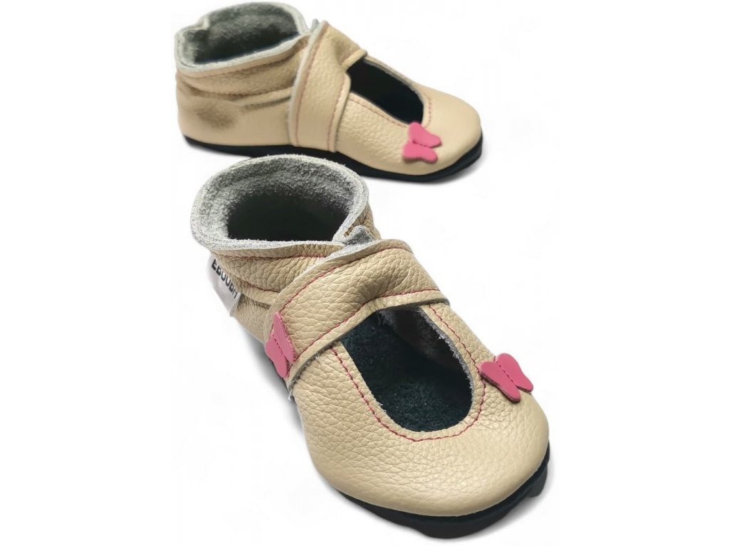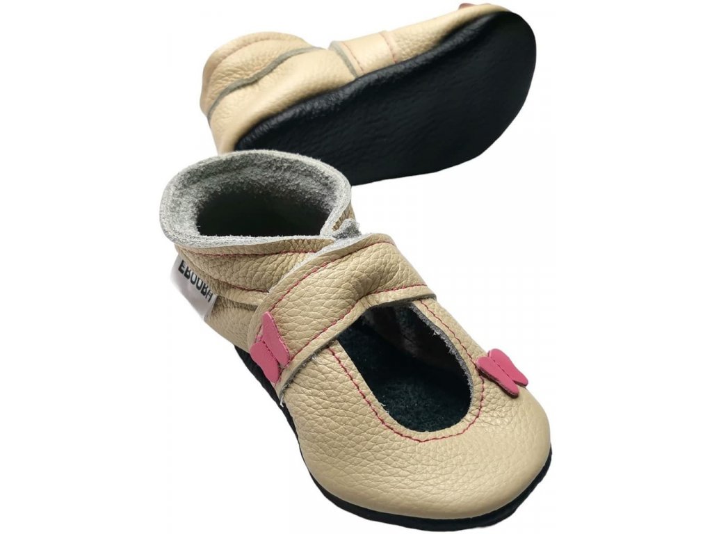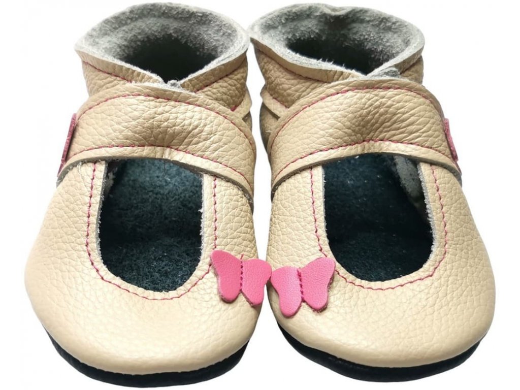 Kožené capáčky s koženou podrážkou sandálky s motýlem béžové EBOOBA