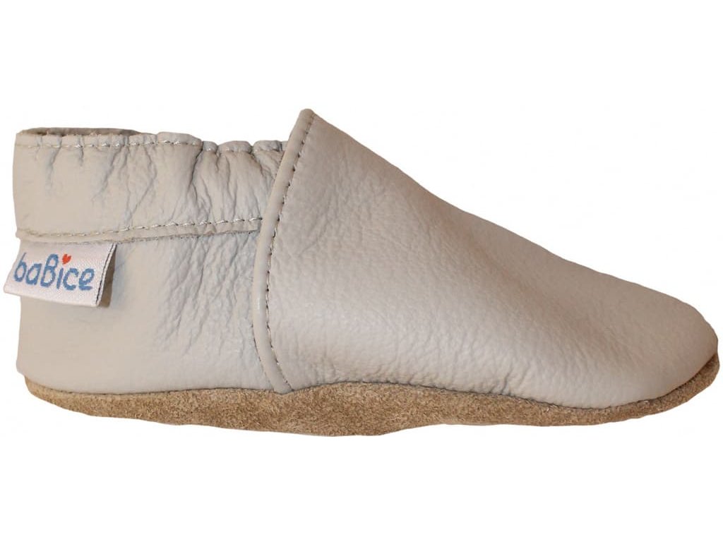 Kožené capáčky s koženou podrážkou šedé BABICE