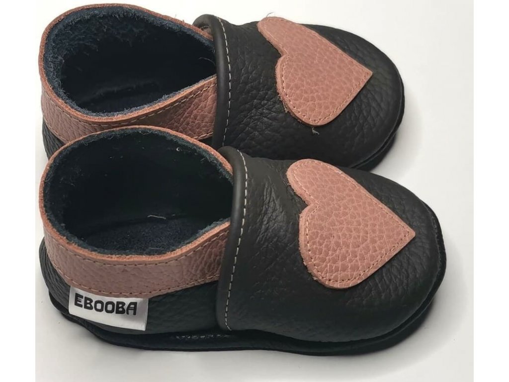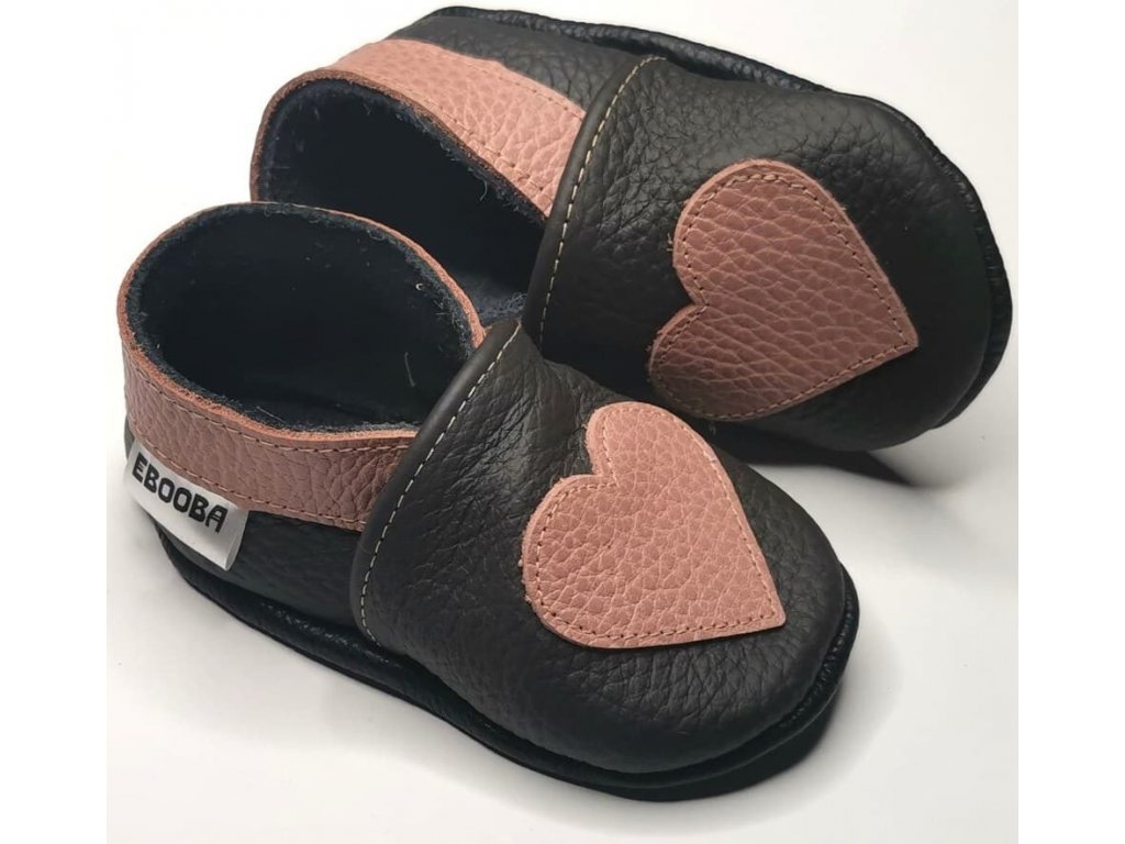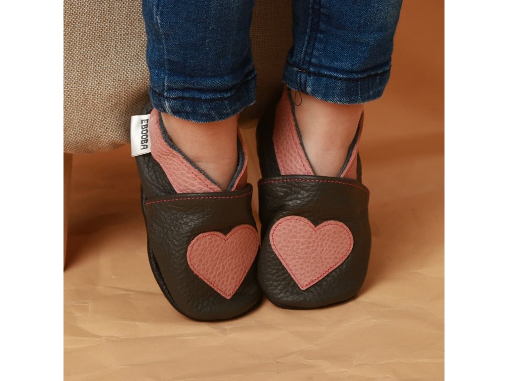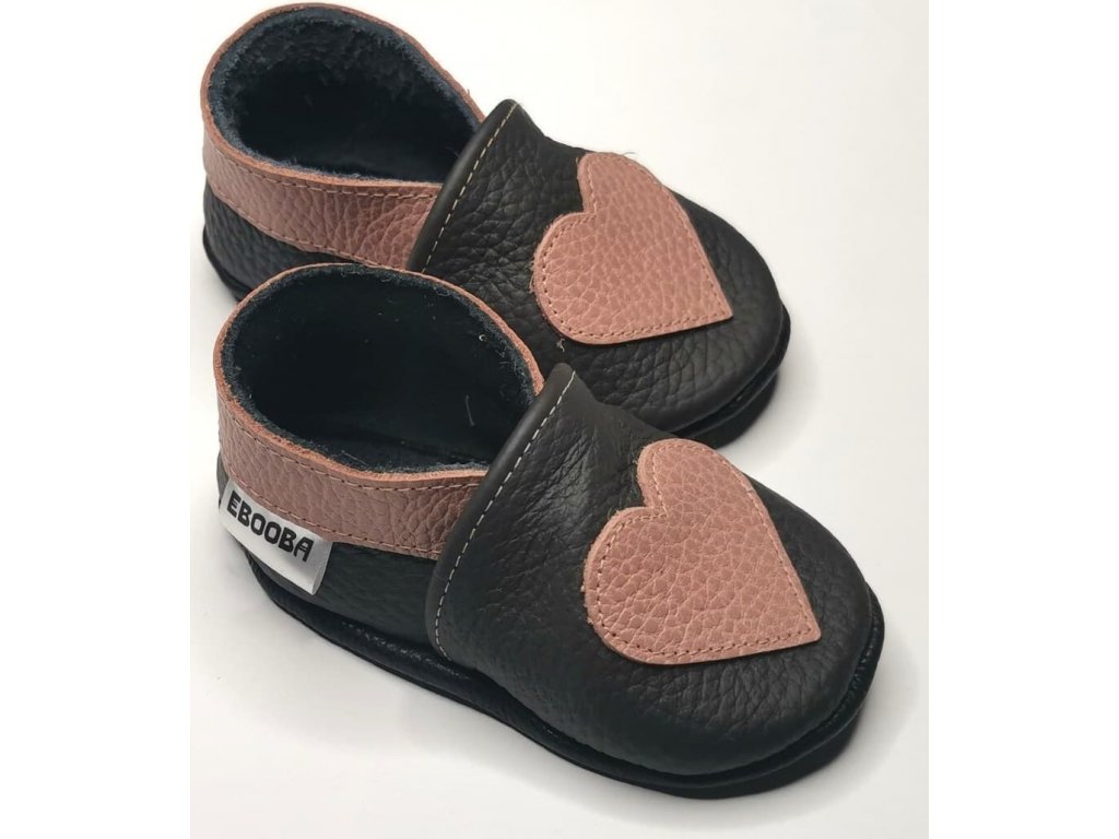 Kožené capáčky s koženou podrážkou srdíčko EBOOBA