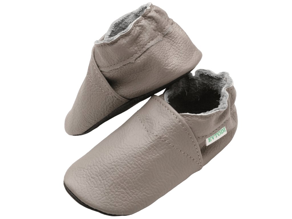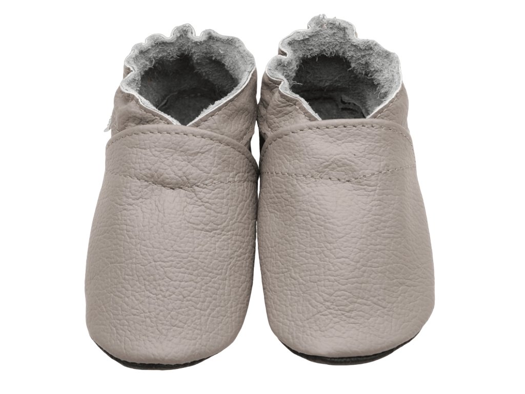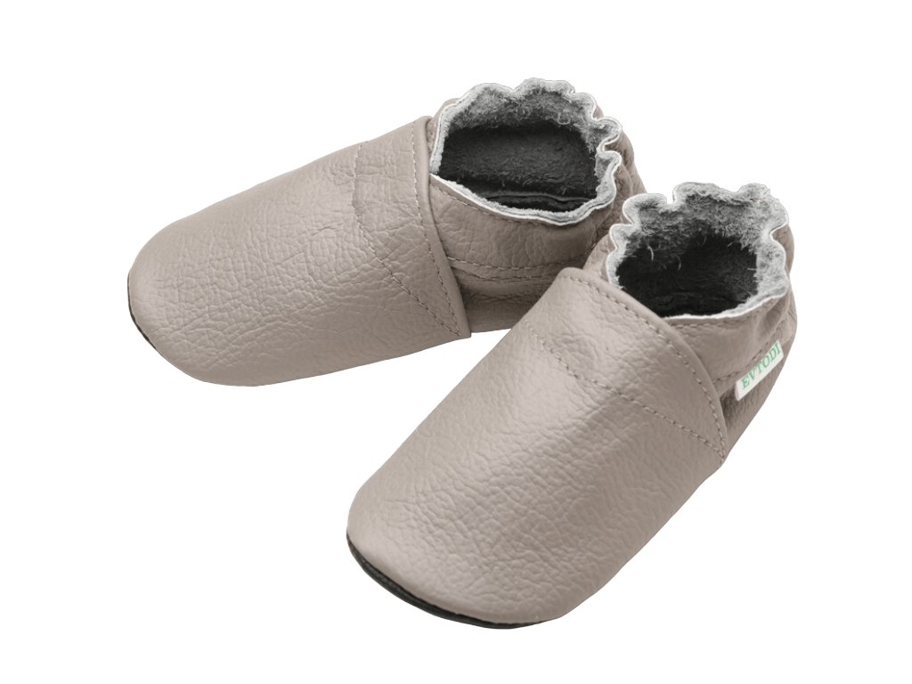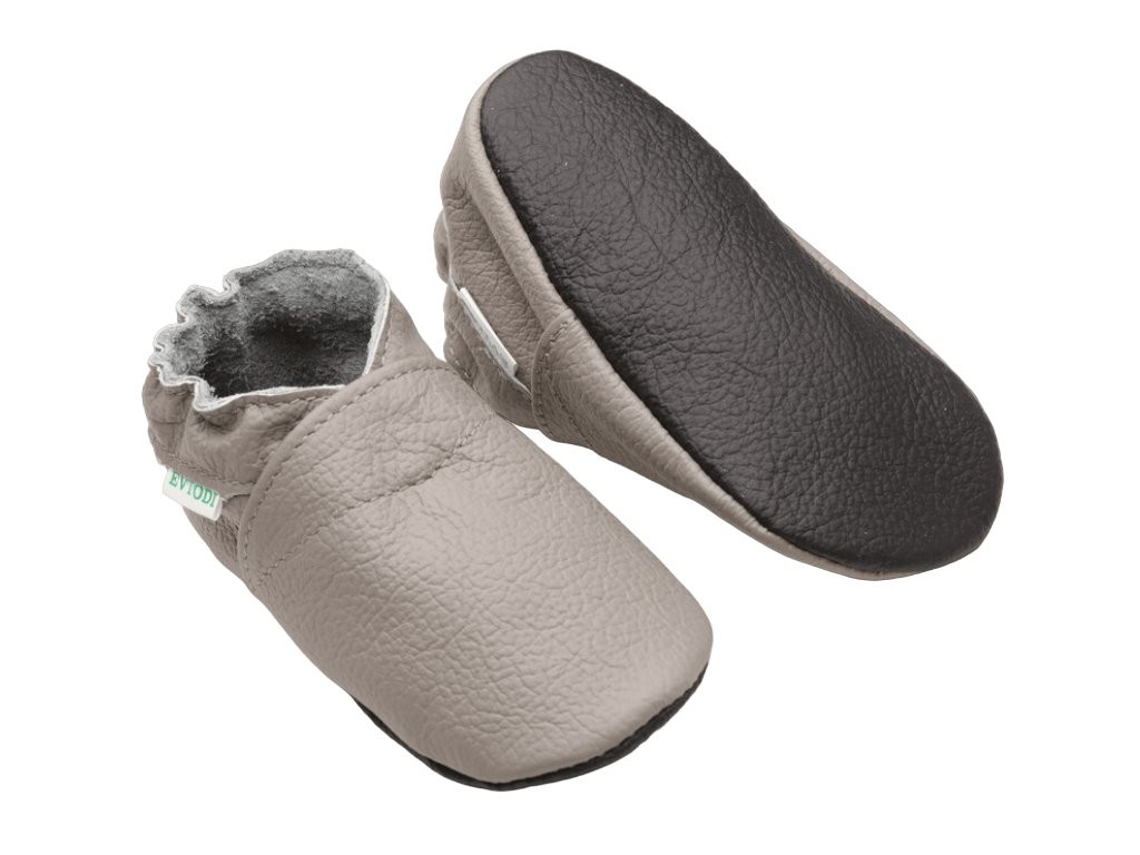 Kožené capáčky s koženou podrážkou světle šedé EVTODI