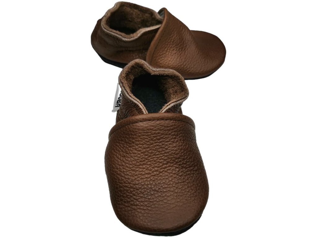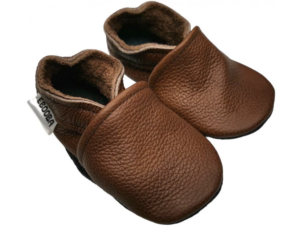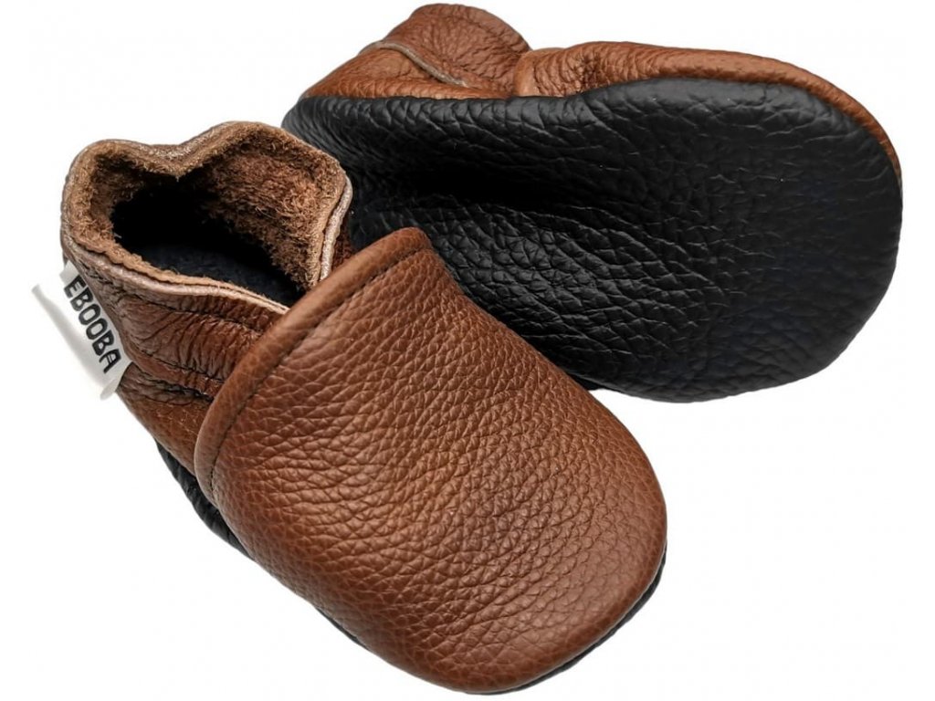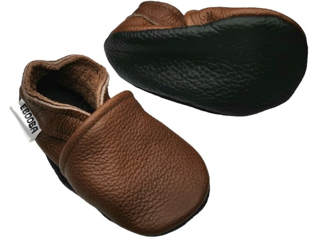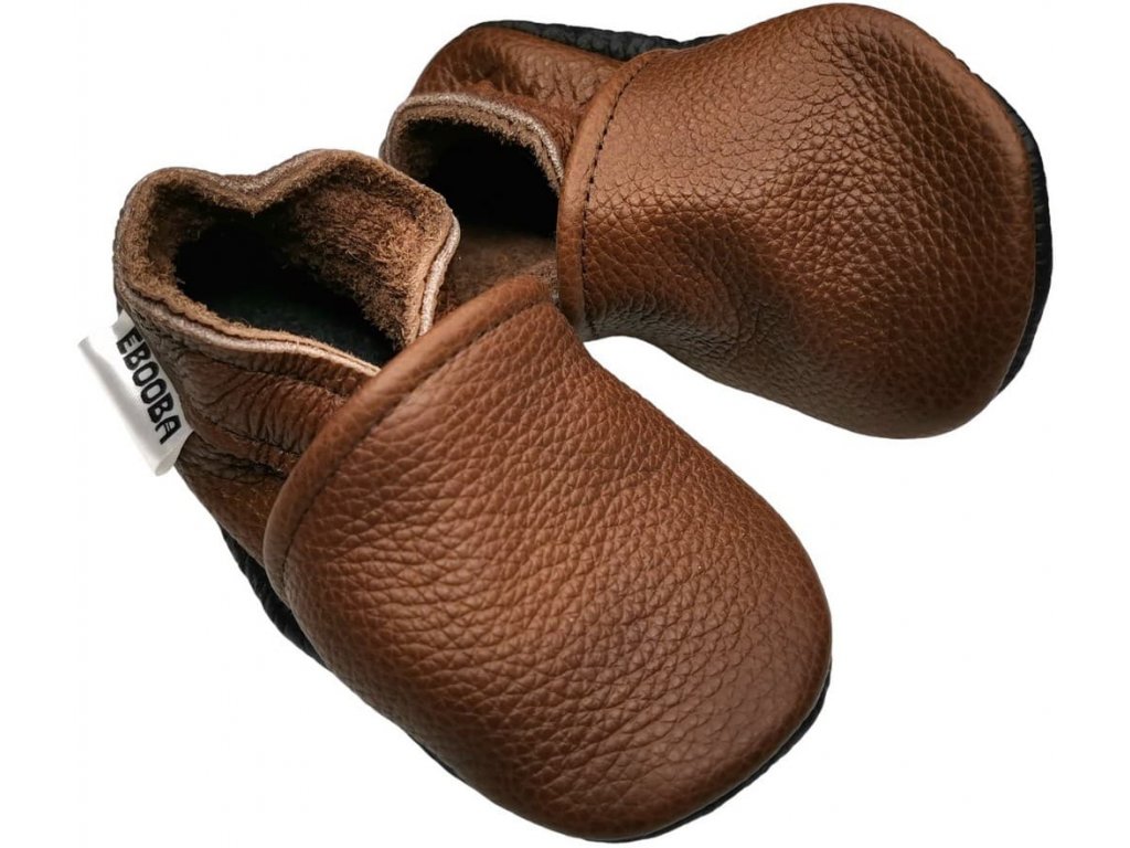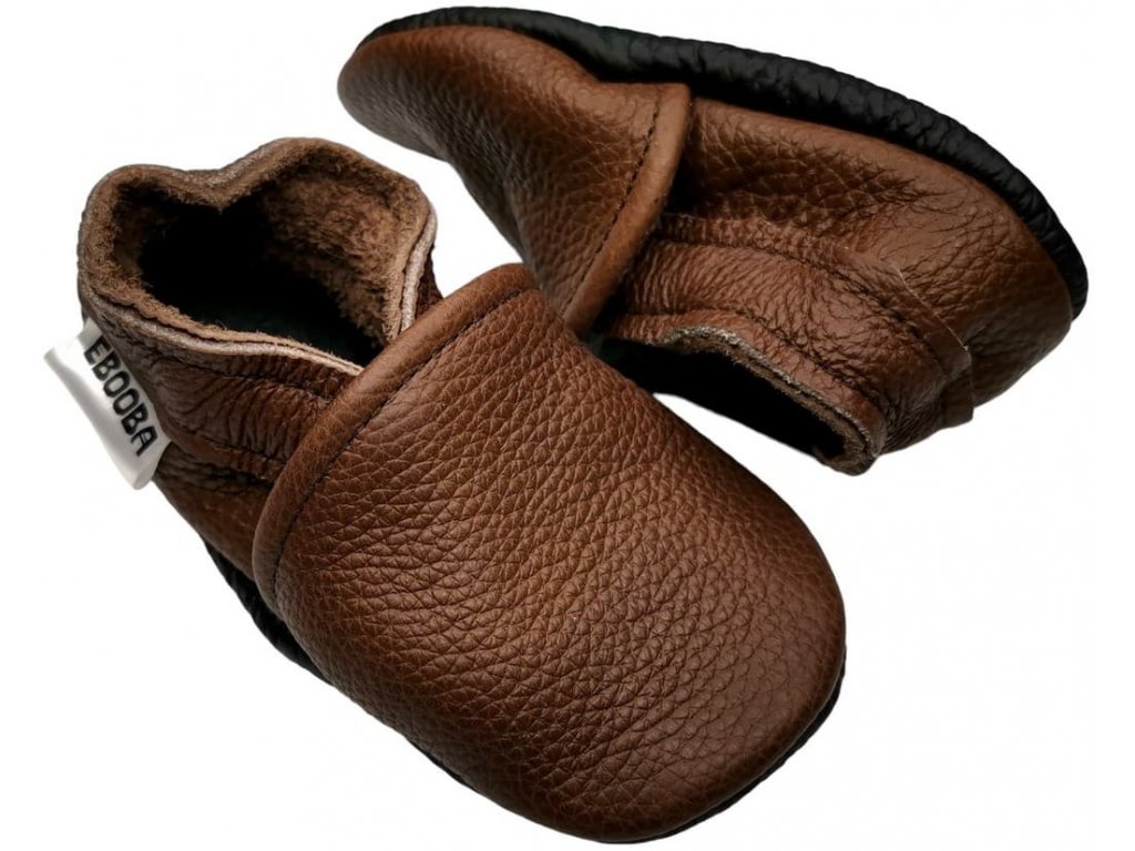 Kožené capáčky s koženou podrážkou tmavě hnědé EBOOBA