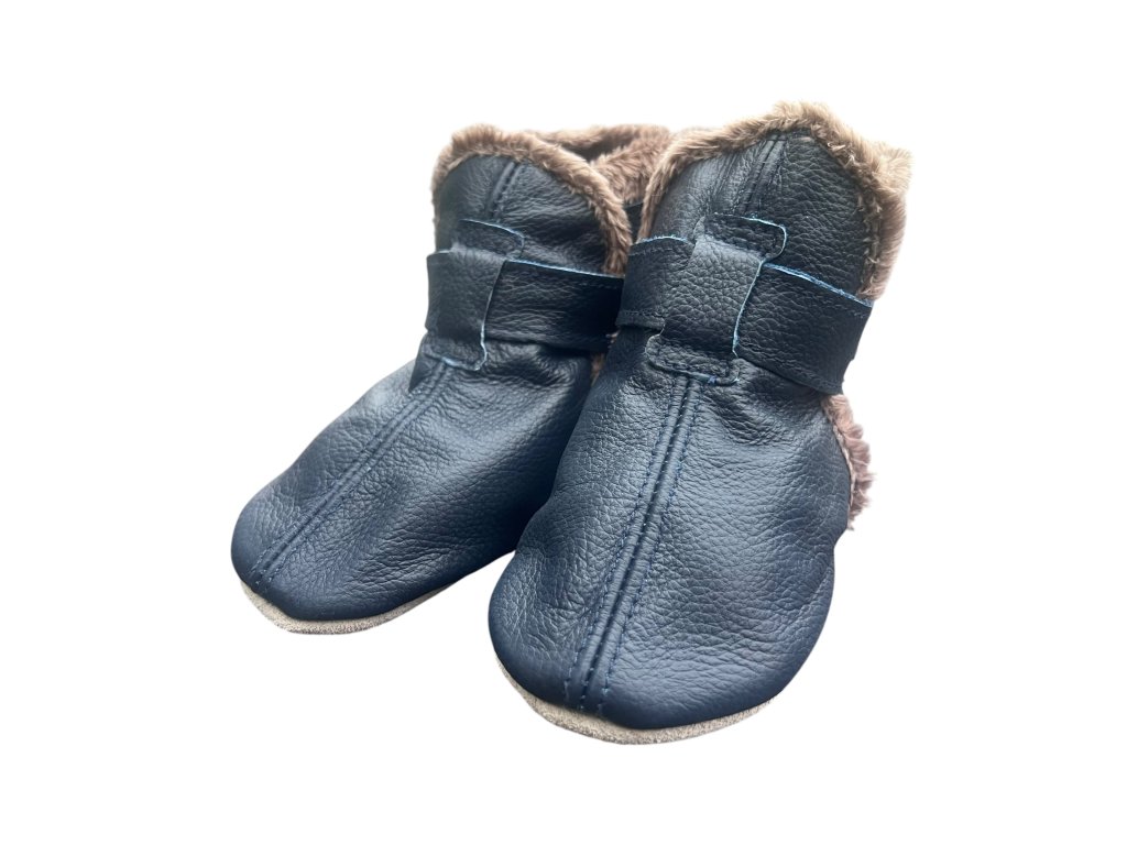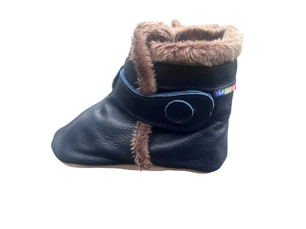 Dětské kožené zimní capáčky s hebkým hřejivým kožíškem a koženou podrážkou jsou perfektní do chladného počasí. Mají suchý zip pro snadné nazouvání a vyzouvání. Jsou ušity z té nejjemnější a nejkvalitnější kůže, která umožňuje kůži dýchat. Zároveň jsou však stále maximálně ohebné a poddajné. Obujte zimní capáčky na punčocháče nebo ponožky a nožičky budou vždy v teple a jako v bavlnce.