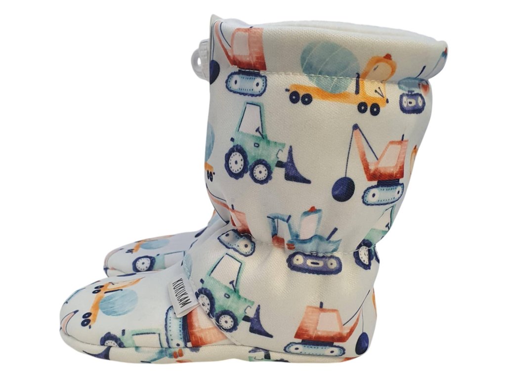 Zimní doftshellové  capáčky Kukukam udrží dětské nožky v teple, suchu a pohodlí i v chladných dnech. Jsou lehké, měkké a díky praktickému střihu se snadno nazouvají i drží na noze. Ideální do kočárku, nosítka nebo na první krůčky venku.