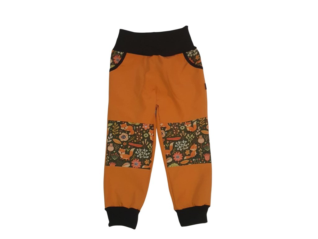 Softshellové kalhoty s microfleecem - oranžové Lištičky v lese - KUKUKAM