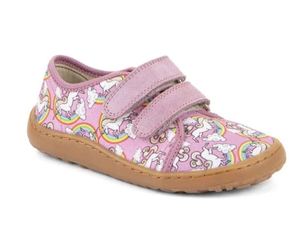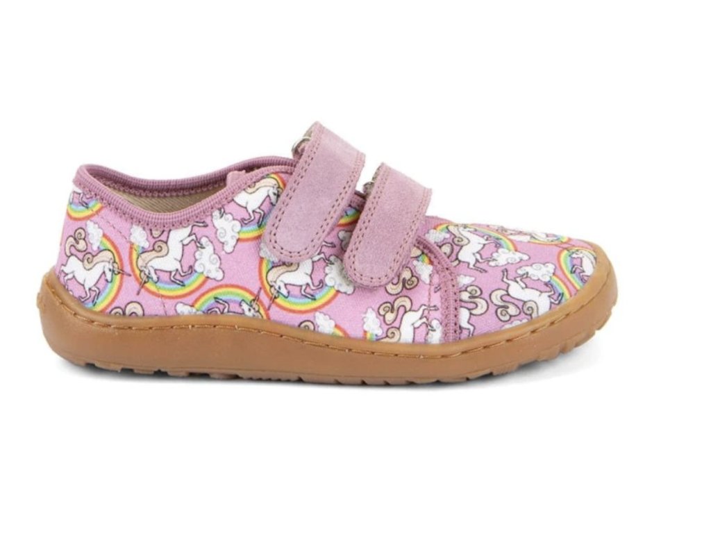 Barefoot plátěné tenisky Canvas White/Pink s jednorožci – FRODOO